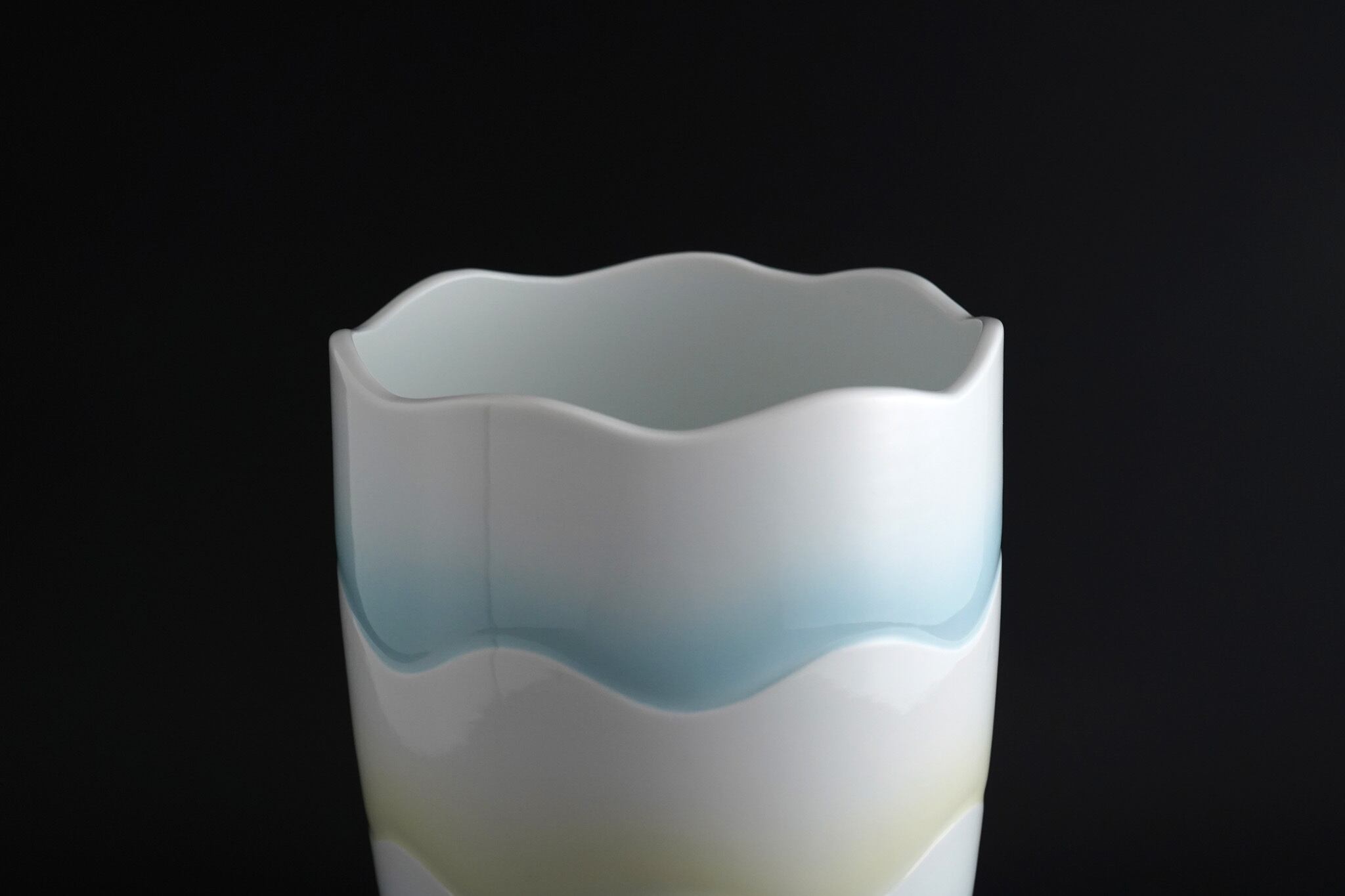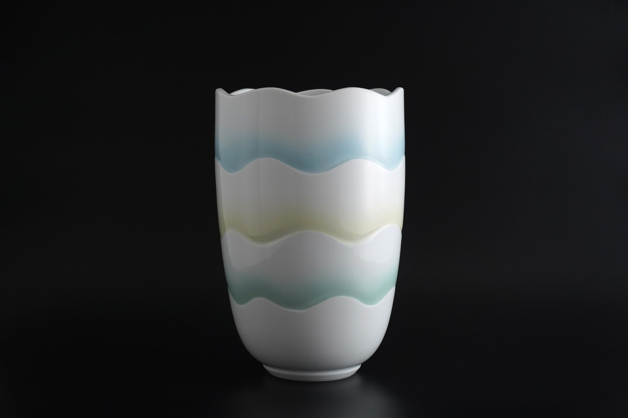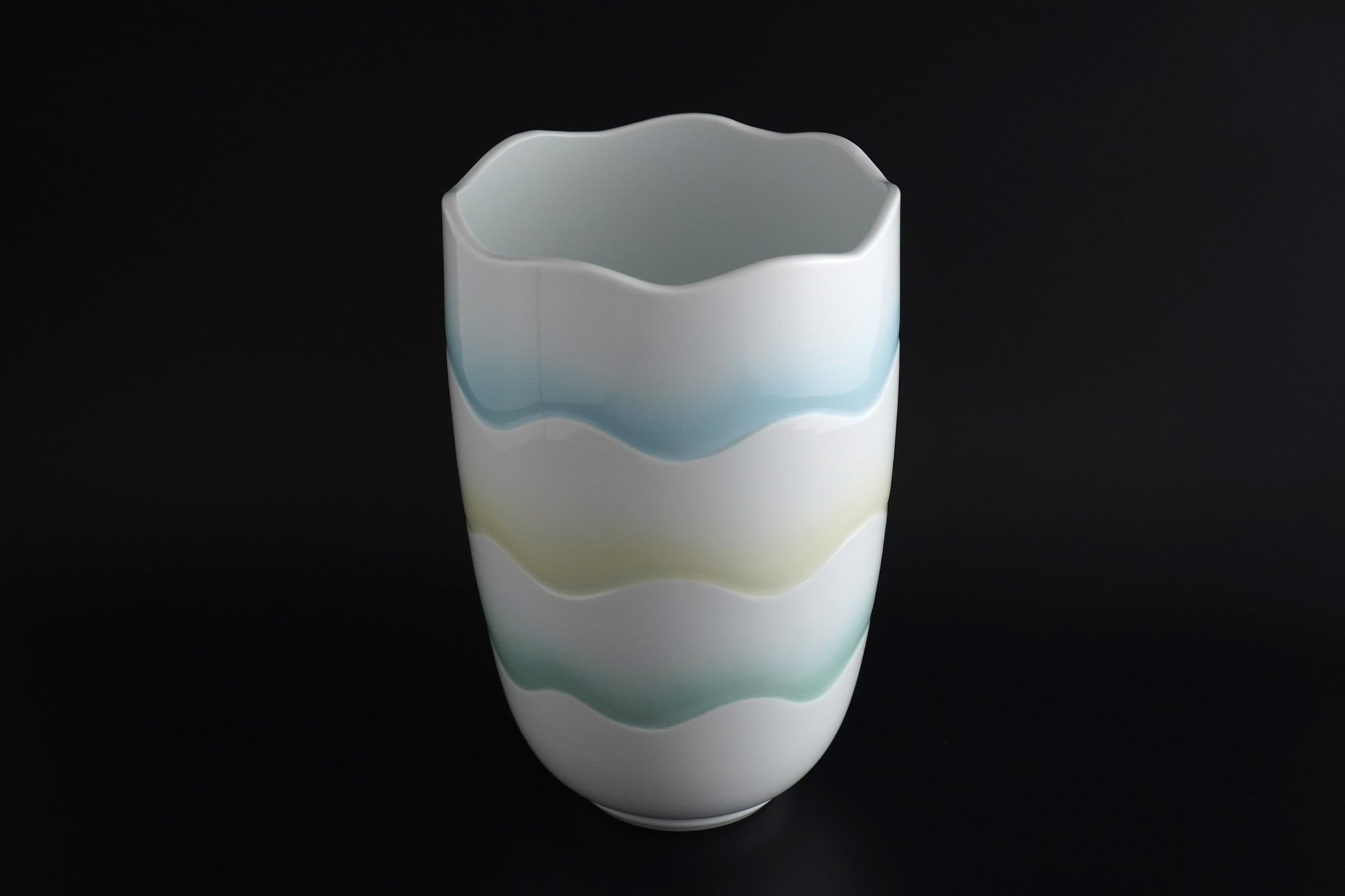 【井上康徳作】白磁黄緑青釉波文花器