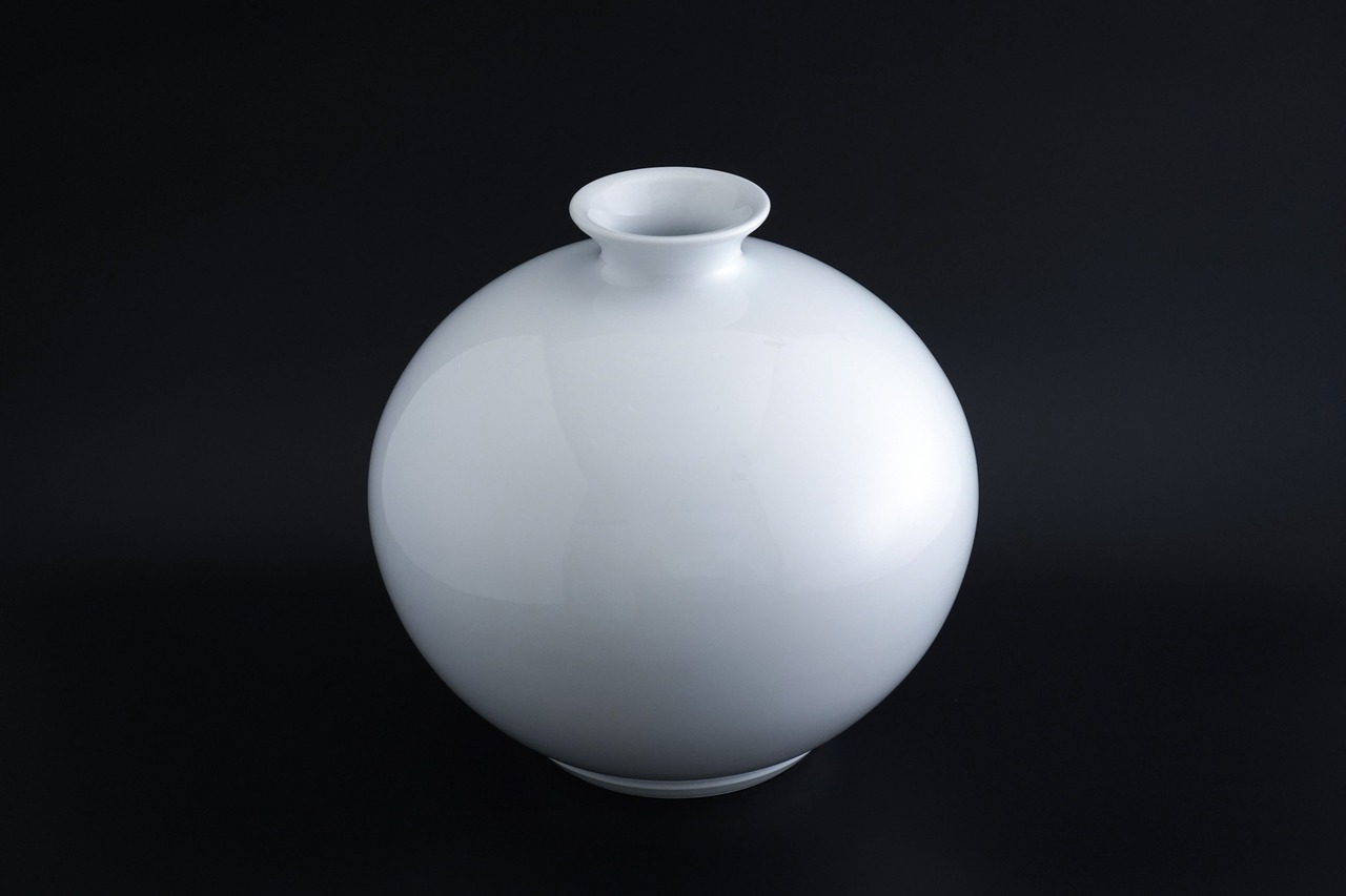 「一切の加飾をしない白磁の神髄は造形の美しさにある」というポリシーのもと、丸みの頂点や口部の開き、高さなど、すべての要素にこだわり追い求めた造形美の集大成とも言える作品です。