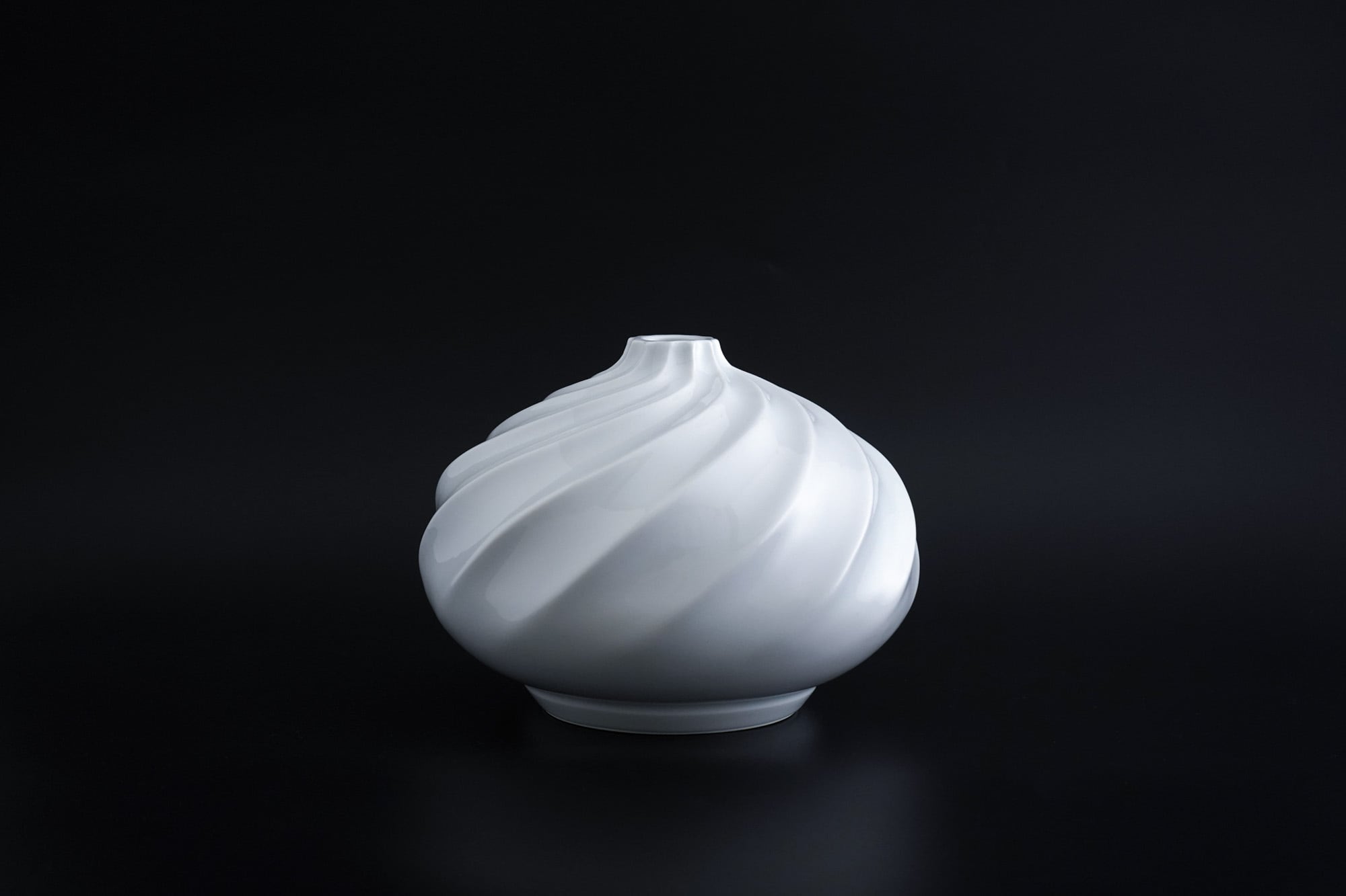 彫りの陰影が独自の雰囲気を持ち、和洋どちらのインテリアにも調和しつつ存在感のある作品です。完璧な造形の美によって、色を用いて加飾をせずとも、反射する光が集まった艶やかな輝き、表面に落ちた影、それそのものが文様のように映し出され、置く場所によって表情が変わる様子をお楽しみ頂けます。