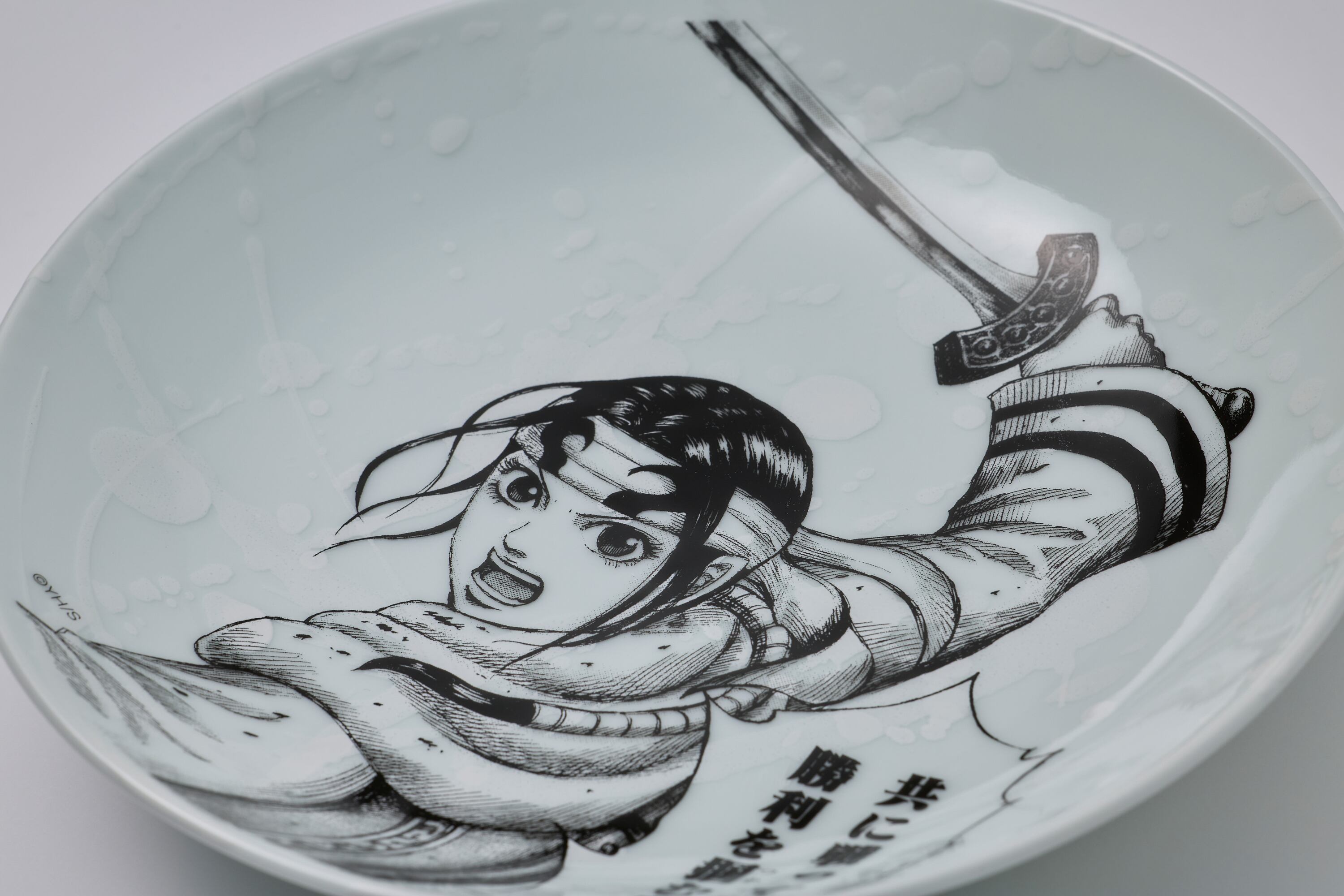 人間国宝である故・井上萬二の孫であり、その技を受け継いだ井上萬二窯三代目の井上祐希による、本コラボオリジナルの作品です。有田焼特有の白磁と『キングダム』のキャラクターが織りなす迫力ある作品となっております。