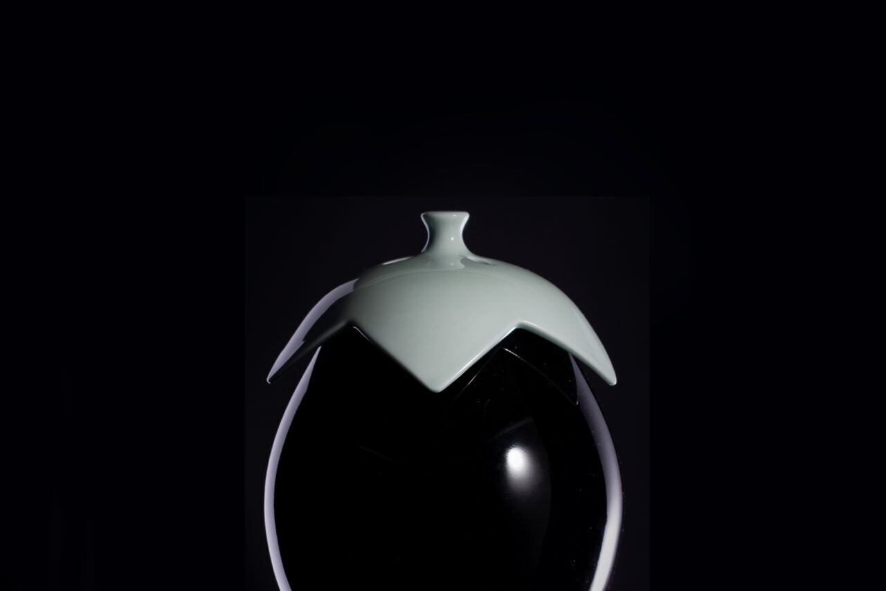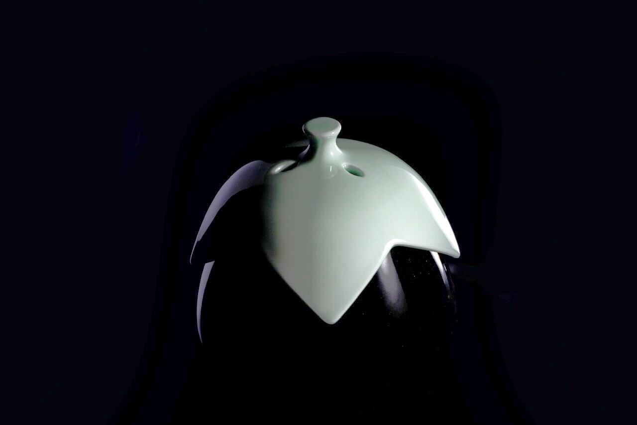 萬二が自身の古希に、テーマカラーの紫を用いて制作した茄子の香炉です。